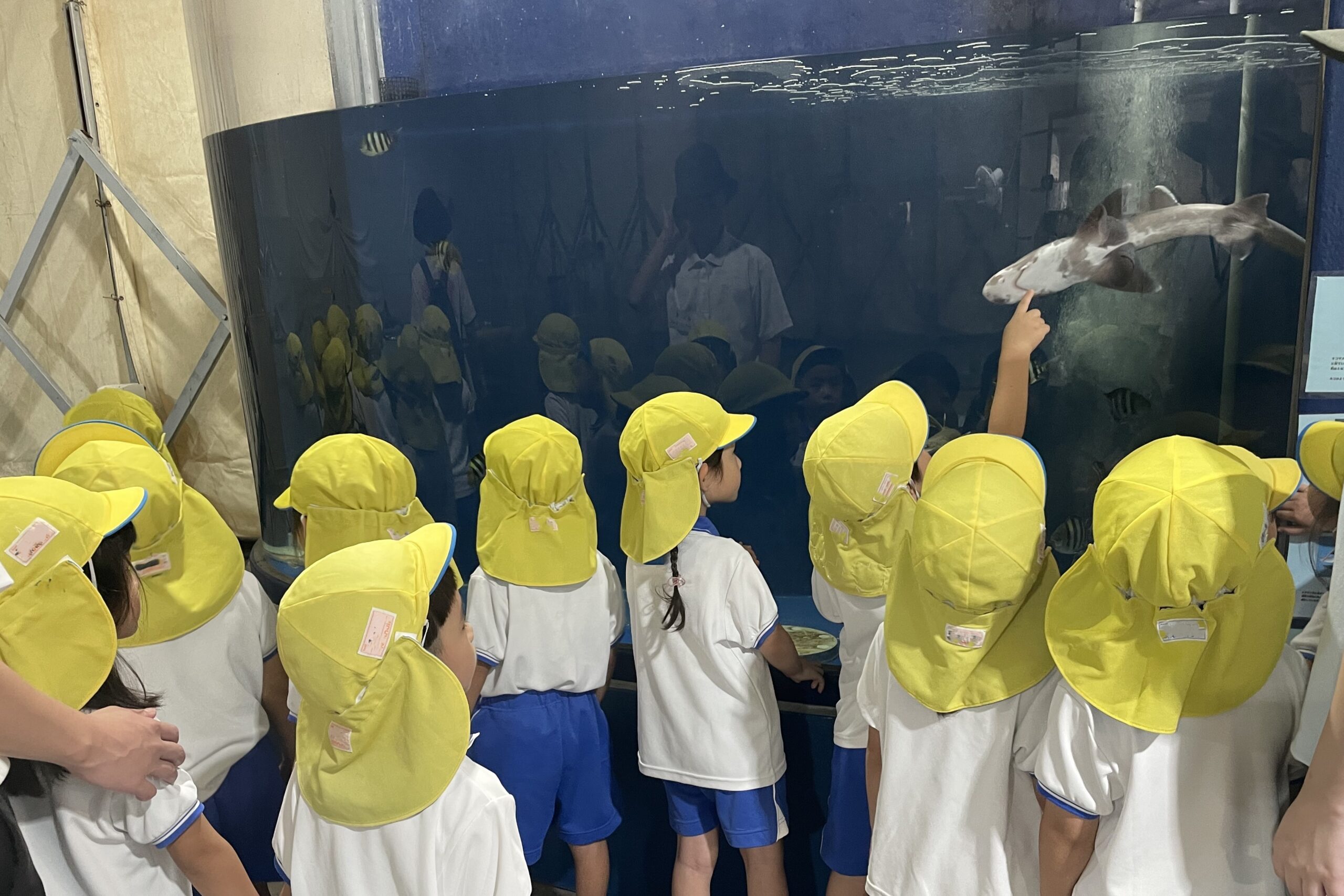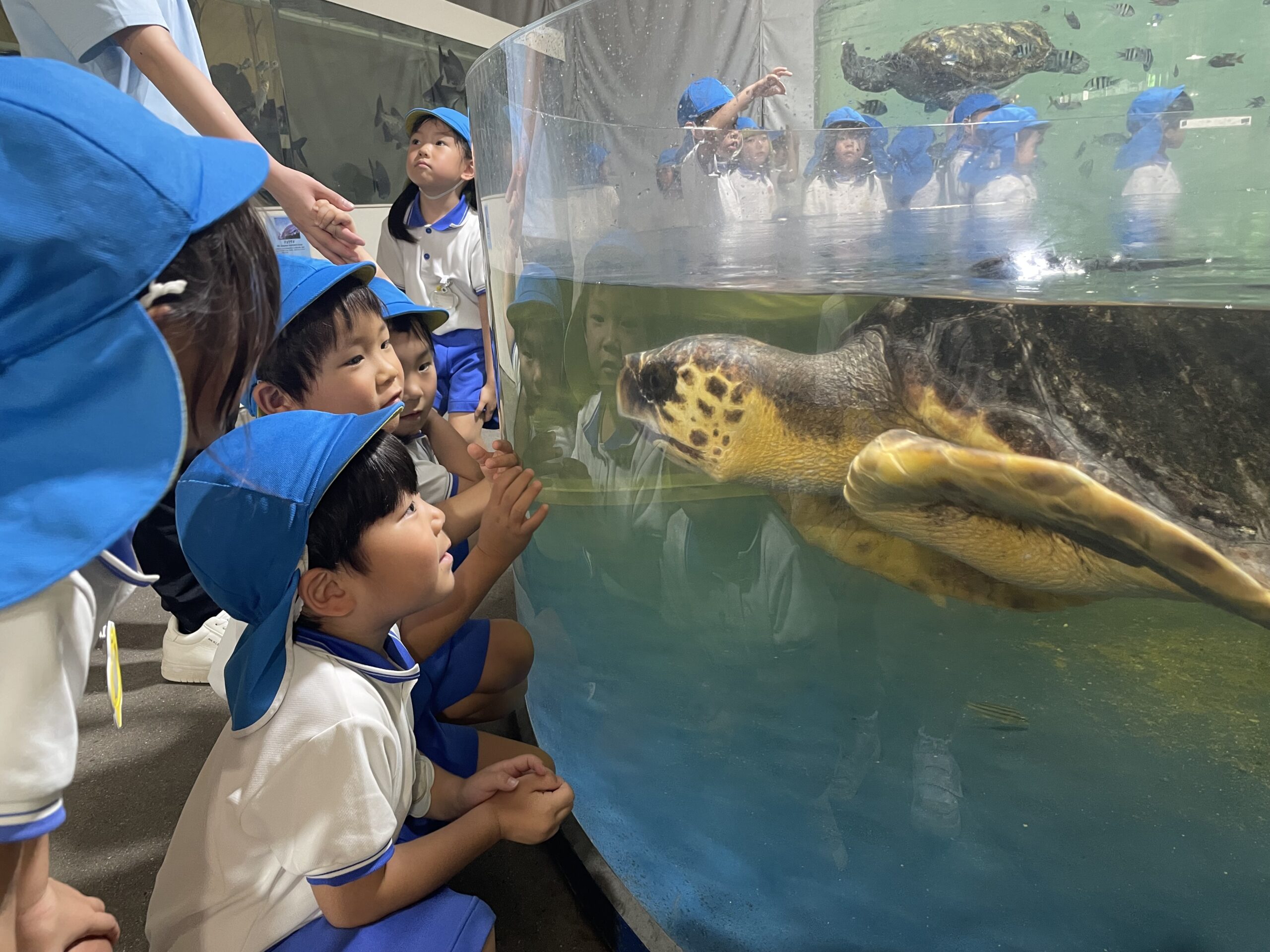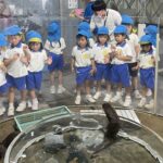 来園して生き物に親しむだけではなく、事前に水族館から送られてきた資料を使って「瀬戸内海の海のこと…いろいろな生き物が暮らす大切な海なので、ゴミを捨てない・拾う・リサイクルする心掛けが大切である。」や「動物や魚を知ることは、命や自然を大切にすることにつながる。」等を各クラスで学びました。実際の海の生き物たちを観て、「生き物たちが元気に暮らせるように、海を大切にしよう」という気持ちが更に大きくなったことと思います。