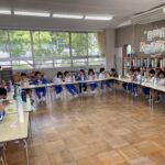 このお披露目会のもう一つのお楽しみは、桜組さんによる梅組さんへの兜のプレゼントです。梅組さんの喜ぶ姿を思い浮かべながら大型折り紙を丁寧に折って兜を完成させていきました。