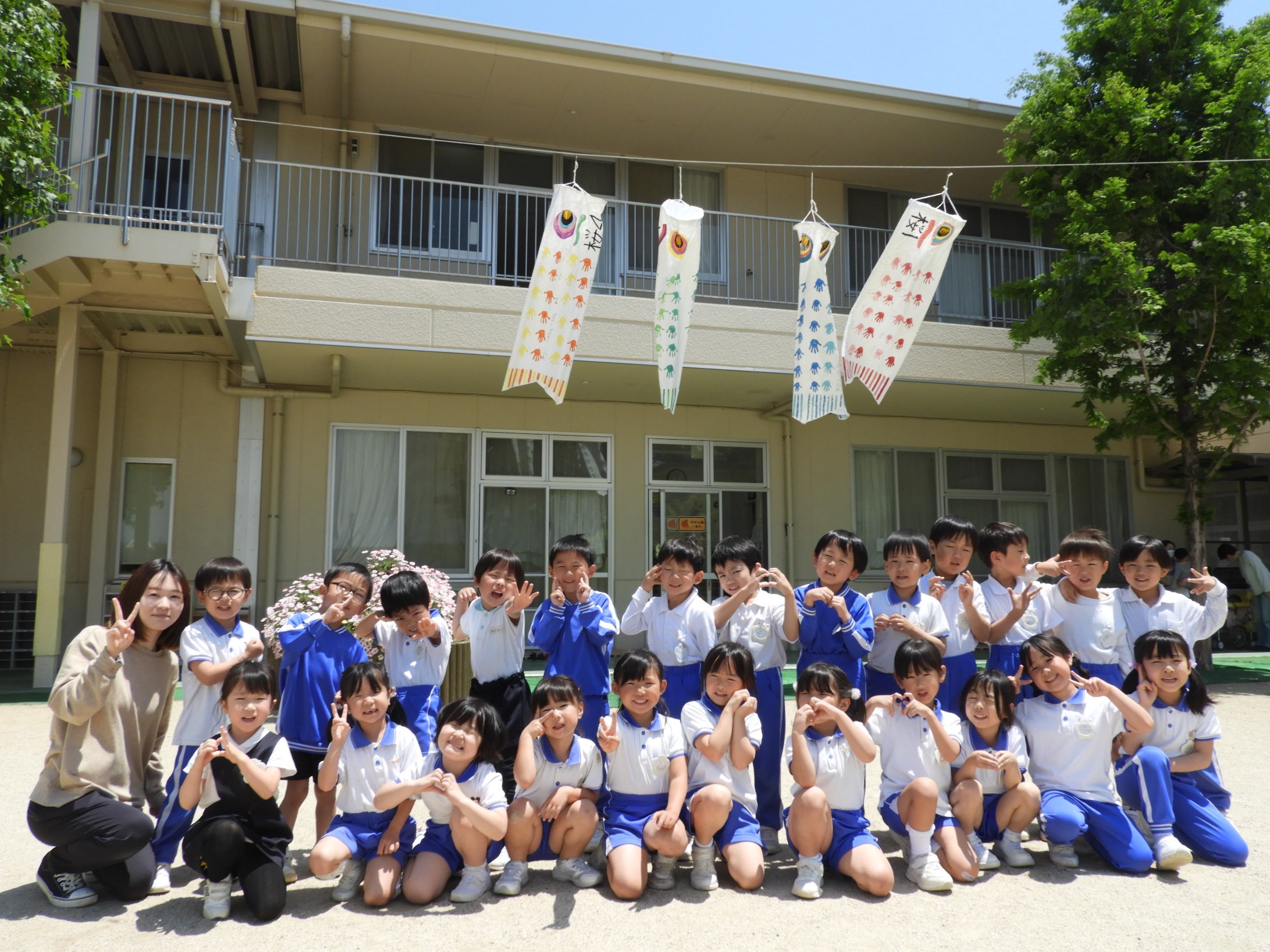 - 桜組5歳児 鯉のぼりと一緒に「はい、ポーズ」