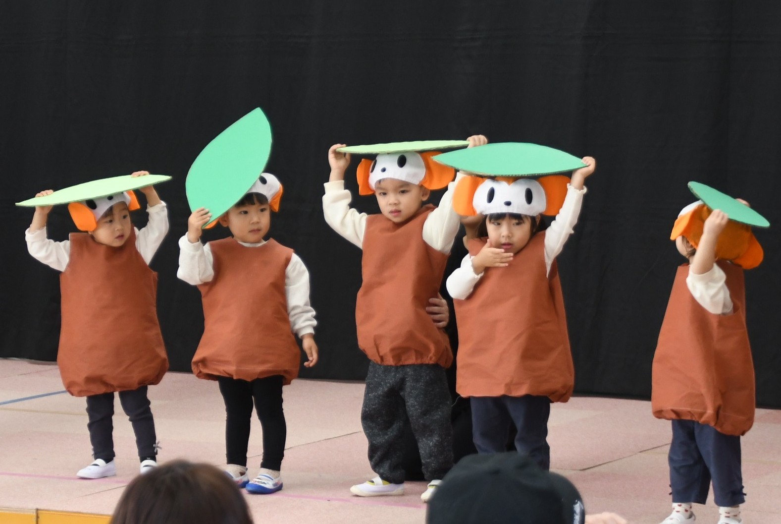 みかん1組さんは、赤と黄色の衣装に身を包んで、かわいいこびとさんになりました!それぞれの得意なことや大好きな遊びを披露してくれました。片付け上手なこびとさんや、身体を動かすことが好きなこびとさんたちになって楽しんでいました。先生たちと一緒に大好きな踊りも見せてくれましたよ♪